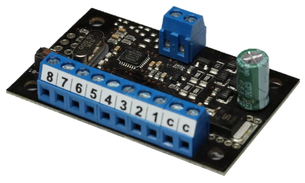 The SD8 Signal Decoder can control multiple Light Signals with up to 8 total lights. Control of a Light Signal with more than 8 lights is also possible, combining multiple SD8 Signal Decoders.